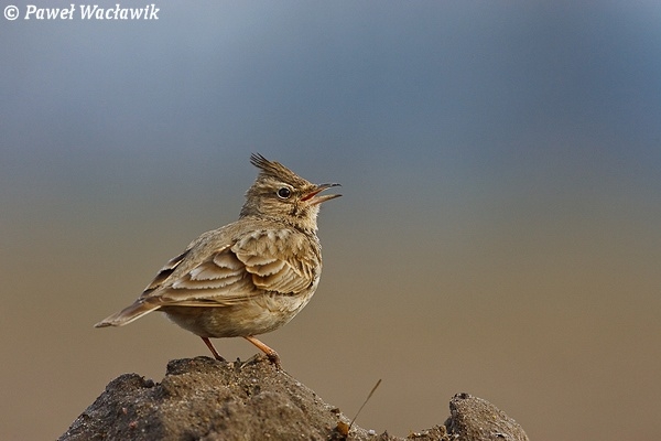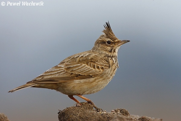 Skromnie ubarwiony skowronek o krępej sylwetce z krótkim ogonem, wyróżniający się zaostrzonym czubkiem. Ubarwienie szare z ciemnym, obfitym plamkowaniem na wierzchu ciała i kreskowaną piersią.