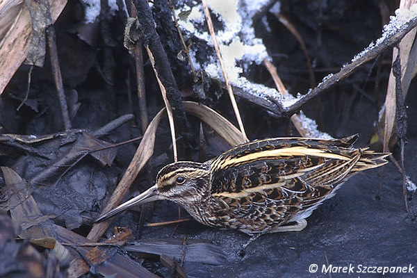 19-23 cm Najmniejszy naszych bekasów, wyraźnie mniejszy od kszyka, z krótszym dziobem i ogonem. Ubarwienie złożone z barw brunatnych, czarnych i żółtych jest tak doskonale maskujące, że ptak może być niezauważalny nawet z bliskiej odległości. Od innych bekasów różni się czarnozielonymi pasami na grzbiecie i podwójną beżową brwią. Skryty i trudny do obserwacji ale niepłochliwy, gdyż polegając na swym maskującym ubarwieniu pozwala zbliżyć się na niewielką odległość.