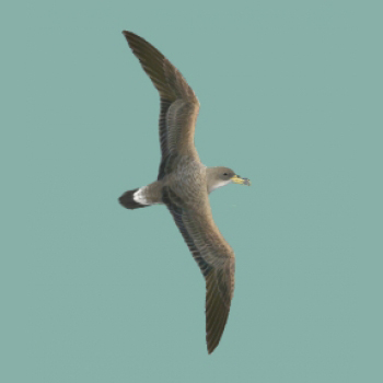 Długoskrzydły i wysmukły burzyk, o jaśniejszym upierzeniu niż pokrewne gatunki. Ubarwienie płowobrunatne z wierzchu, za wyjątkiem czarniawych lotek i sterówek, oraz białe od spodu. Głowa szara, dziób gruby, żółtawy z ciemnym końcem. Jak wszystkie burzyki większość czasu spędza na otwartym morzu, rzadko zbliżając się do wybrzeża.