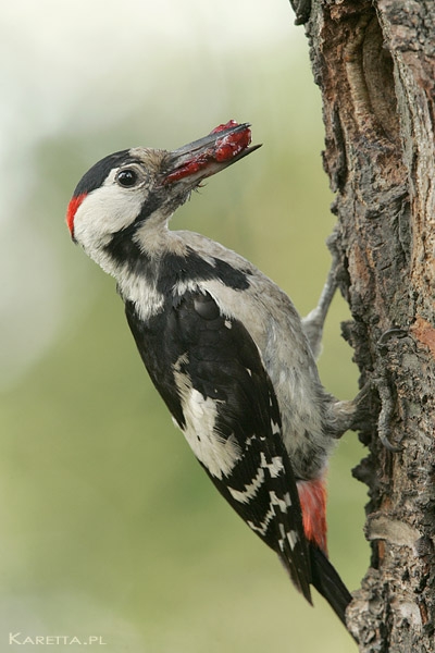 gniazdo: Dziupla wykuta w drzewie liściastym lub owocowym zwykle kilka metrów nad ziemią