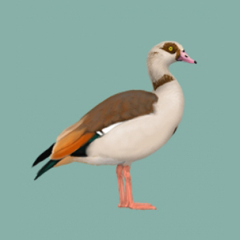 Jest to gatunek afrykański, który utworzył w Europie lokalne populacje z osobników zbiegłych z niewoli lub celowo introdukowanych. Większa od kazarki o masywniejszej budowie i dłuższych nogach. Ubarwienie wierzchu ciała brunatne, a spodu płowe. Pokrywy skrzydłowe białe. Głowa i szyja brązowo kreskowane z brunatną plamą wokół oczu. Dziób czerwonawy z czarnymi skrajami.