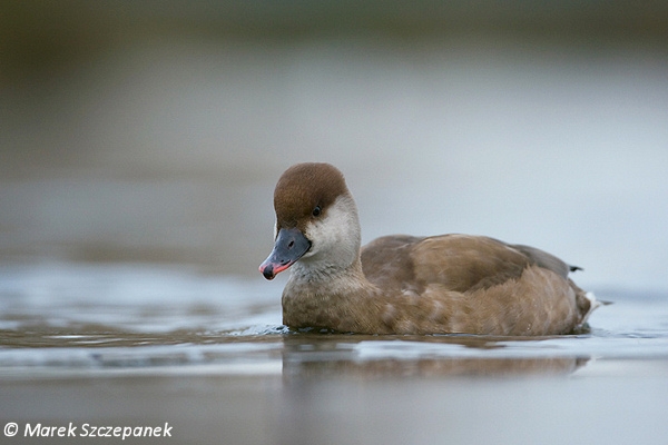 Kaczka wielkości krzyżówki. Samiec w szacie godowej ma rdzawożółtą, krótką grzywę na wierzchu brązowej głowy. Szyja, pierś, pas przez środek brzucha i tył ciała czarne, boki białe, a wierzch tułowia brunatny. Dziób i tęczówka czerwone. Samica brunatna z ciemną czapeczką i rozjaśnionymi bokami głowy i spodem ciała. Dziób czarny z różową przepaską na końcu. Jest jedną z najładniejszych i najrzadszych naszych kaczek. Ostatnio są oznaki pewnego wzrostu liczebności i zajmowania nowych stanowisk lęgowych.