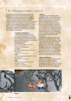 Może jeszcze pamiętasz, że kiedy rozpoczynałeś swoją przygodę z ptakami, nawet najmniejsza poświęcona im książeczka dostarczała Ci mnóstwa nowych informacji i nieznanych wcześniej faktów. Po kilku latach "siedzenia w ptakach" zapewne znasz już na pamięć większość popularnych książek i atlasów, i być może zaczyna Ci brakować "nowości". Osobom, które cierpią na ten rodzaj dolegliwości (syndrom nieustannego głodu wiedzy i informacji) możemy polecić korzystanie ze sprawdzonych źródeł nowoczesnej wiedzy, jakimi są: czasopisma ornitologiczne, internet oraz bezpośrednie kontakty z fachowcami, na przykład podczas letnich obozów ornitologicznych.