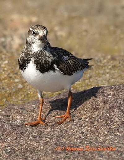 Najbardziej pstrokato ubarwiony siewkowiec. Wielkości szpaka. Sylwetka krępa o krótkich, czerwonych nogach i krótkim, klinowatym dziobie. Na głowie, szyi i piersi charakterystyczny biało-czarny rysunek. Wierzch ciała rdzawo-czarny, spód biały. W locie rzucające się w oczy białe pasy na skrzydłach i biało-czarny ogon.
