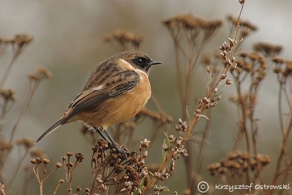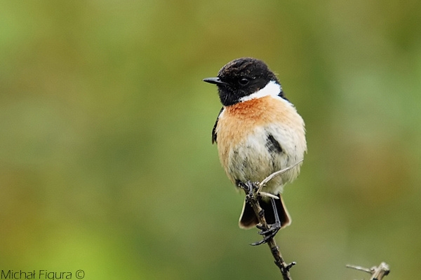 Podobna do pokląskwy, ale ciemniej ubarwiona. Samiec w szacie godowej ma czarną głowę i brunatny wierzch ciała z zaznaczonymi jaśniejszymi smugami. U nasady skrzydeł dwie białe podłużne plamy, a na bokach szyi biały kołnierzyk. Pierś i boki brzucha rdzawoczerwone. Ogon czarny, a kuper rudawy, czarno kreskowany. Samica mniej skontrastowana, z brunatną głową.