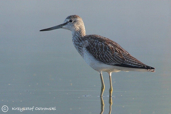 Największy z naszych brodźców z długimi, oliwkowymi nogami i nieco zadartym dziobem. W szacie godowej szary wierzch ciała jest upstrzony czarnymi plamami układającymi się w pasy, spód nakrapiany plamkami i kreskami. W szacie spoczynkowej i młodocianej bardziej jednolicie szary z łuskowanym wzorem na wierzchu.