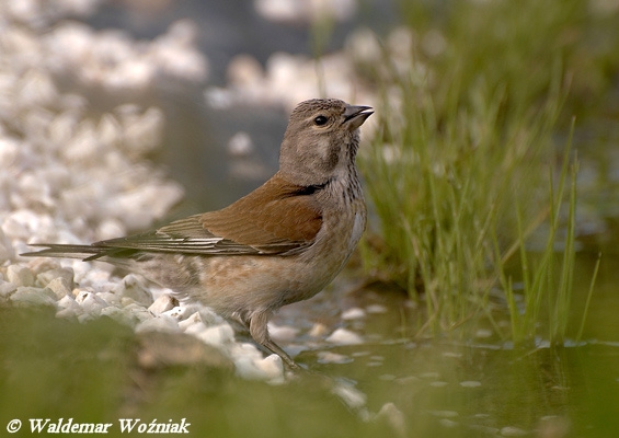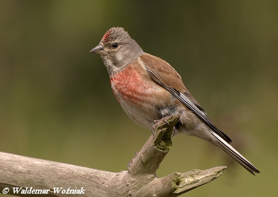 Nieco mniejsza i delikatniejsza od wróbla. Samiec w szacie godowej wyróżnia się dużą czerwoną plamą na piersi i małą na czole. Głowa i szyja popielate. Grzbiet i pokrywy skrzydłowe ciepłobrązowe. Lotki czarniawe z białymi brzegami. Boki brzucha brązowe z ciemniejszymi plamkami. Samica pozbawiona czerwieni, bardziej brązowa.