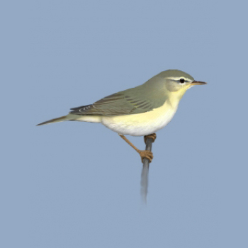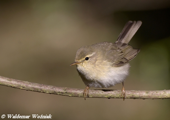 Bardzo podobny do pierwiosnka, od którego różni się jasnobrązowymi nogami i bardziej wystającymi lotkami pierwszego rzędu. Ubarwienie wierzchu szarooliwkowe, spodu bladożółtawe, a brzuch biały. Na głowie wyraźna biaława brewka podkreślona ciemnym paskiem ocznym.