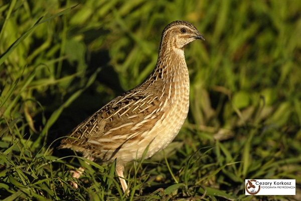 Mniejsza od kuropatwy, wielkości szpaka, ale o masywniejszej sylwetce. Obie płci podobnie ubarwione, brązowordzawe z podłużnym czarno-płowym rysunkiem na grzbiecie i bokach. Nad okiem płowa brew podkreślona od góry i dołu ciemnymi paskami. Samiec różni się od samicy czarnym gardłem.