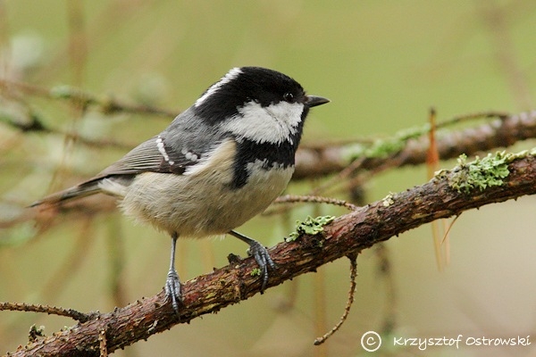 Drobna sikora o krępej sylwetce z dużą głową. Na głowie czarne gardło i czapeczką, która z tyłu jest przerwana białą plamą sięgającą na kark. Policzki białe. Wierzch ciała szary, na pokrywach skrzydłowych białe zakończenia pokryw tworzą dwa paseczki. Spód ciała brudno różowy.