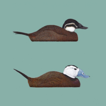 Kaczka nurkująca wielkości głowienki o krępej sylwetce z dużą głową. Często pływa z zadartym długim ogonem. Ubarwienie brązowe, czarno prążkowane. Samiec ma białą głowę z czarnym wierzchem oraz nabrzmiały u nasady, niebieski dziób. Samica z jasnymi policzkami przedzielonymi brunatnym pasem.