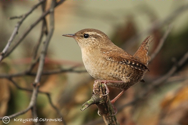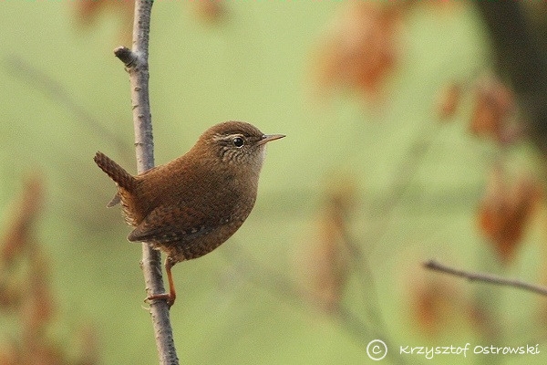 opis: Długość ciała: 9-10 cm. Jeden z naszych najmniejszych ptaków. Łatwo go rozpoznać po brązowym prążkowanym ubarwieniu i drobnej sylwetce z zadartym, krótkim ogonkiem. Choć nie jest ptakiem rzadkim w naszych lasach rzadko go widujemy. Jest bardzo ruchliwy, ale trzyma się gęstych zarośli i rzadko pokazuje się na otwartych miejscach. Mimo swych niewielkich rozmiarów śpiewa wyjątkowo donośnym i dynamicznym głosem. Śpiew jest urozmaicony, złożony z melodyjnych zwrotek z trelami.