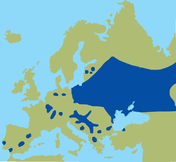 Występuje na niżu całego kraju na rozproszonych stanowiskach, zwłaszcza w dolinach dużych i średnich rzek (Biebrza, dolna Odra, Barycz) oraz na niektórych jeziorach